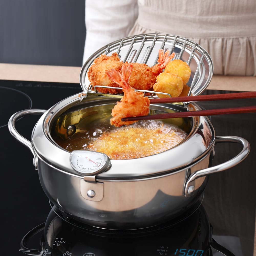 가정에서 손쉽게 튀김을 할 수 있는 냄비로, 분리 가능한 온도계가 달려있어 튀김온도를 확인할 수 있는 실용적인 상품