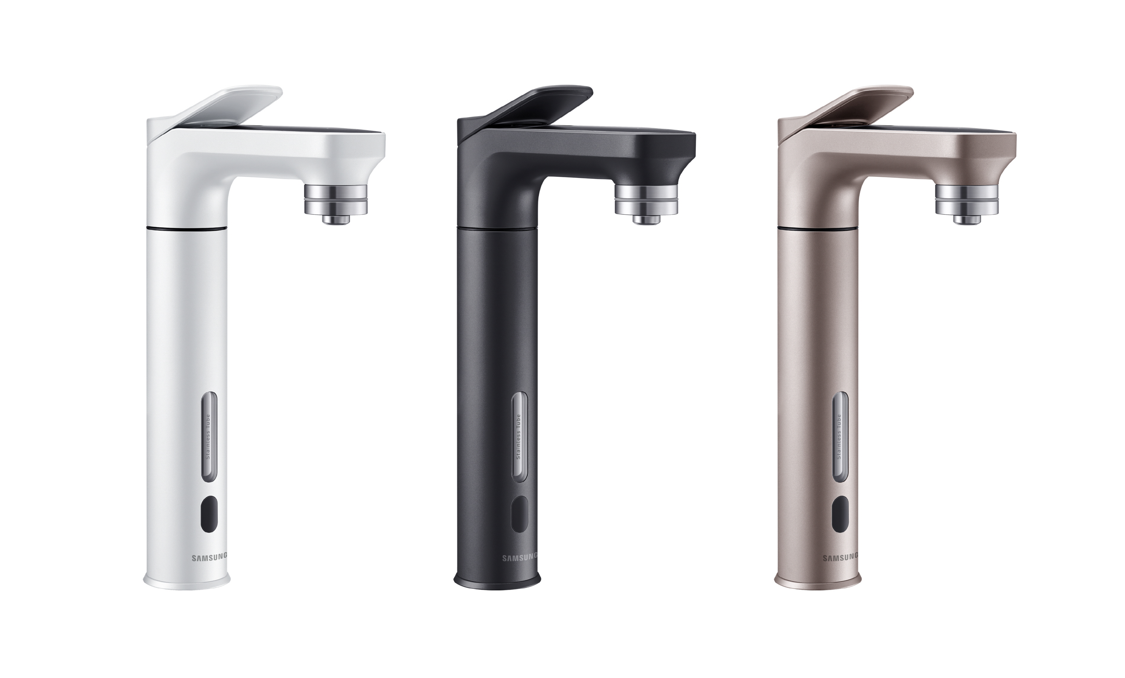 비스포크 정수기는 세련된 주방 공간을 연출할 수 있는 블랙, 화이트, 로즈골드 등 3가지 색상으로 선보인다. 메인 파우셋과 서브 파우셋의 색상을 각각 다르게 적용하면 최대 9가지의 조합을 할 수 있다. 소비자 선택 폭을 넓히기 위해 향후 네이비, 그린, 실버 컬러도 추가할 예정이다.