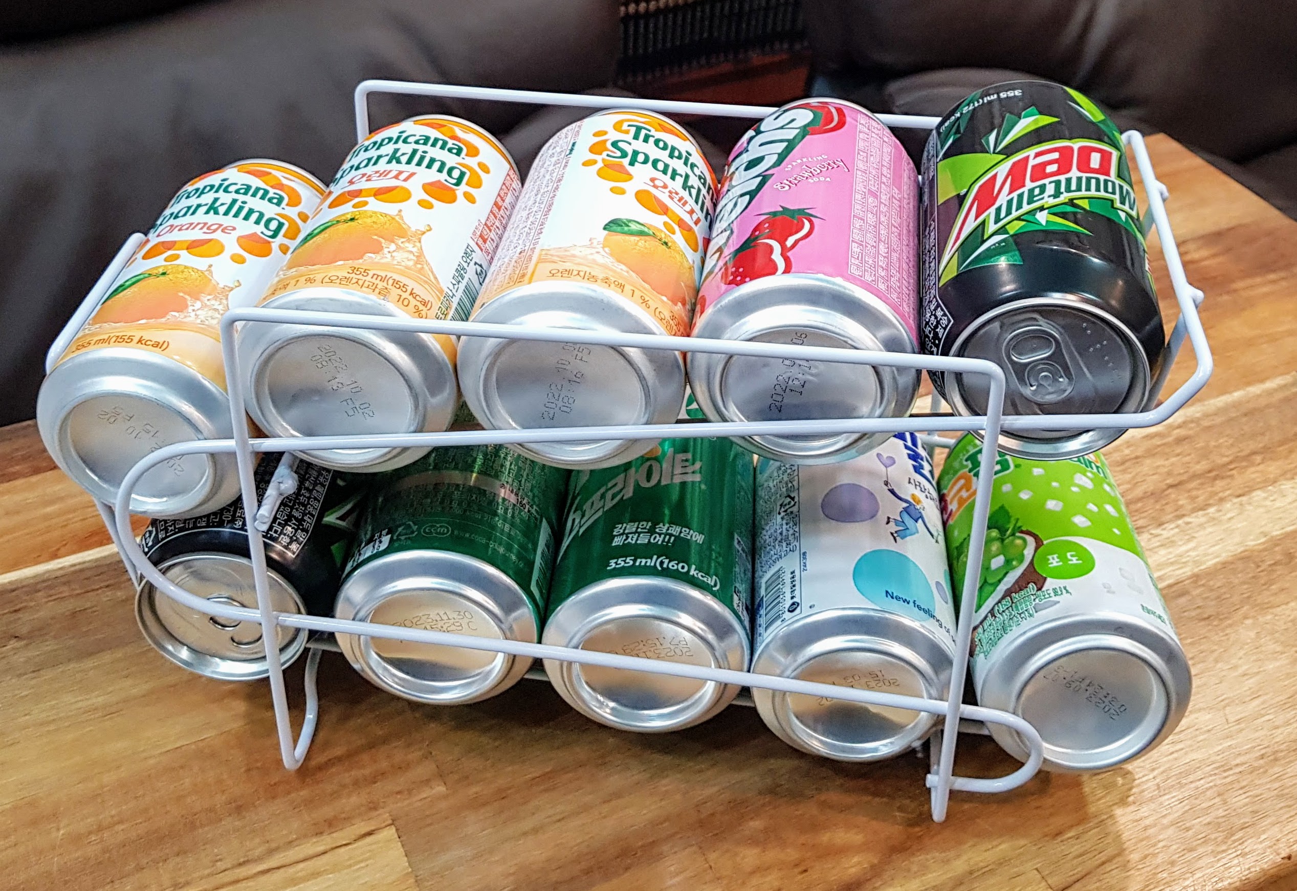 튼튼한스테인리스 철제로 제작되어 안전하게 받쳐주고 10개의 음료수 캔을 넣어도 무너지지 않아요.