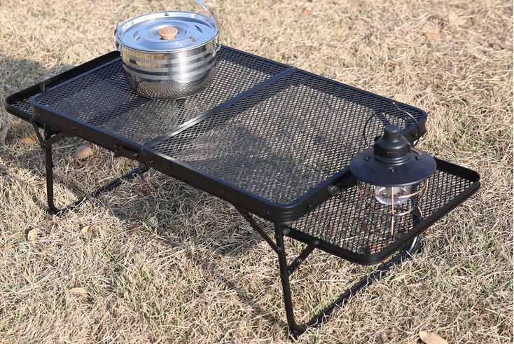 간편하게 설치되는 테이블 캠핑 철제 메쉬 테이블 캠핑 경량 접이식 사이드윙