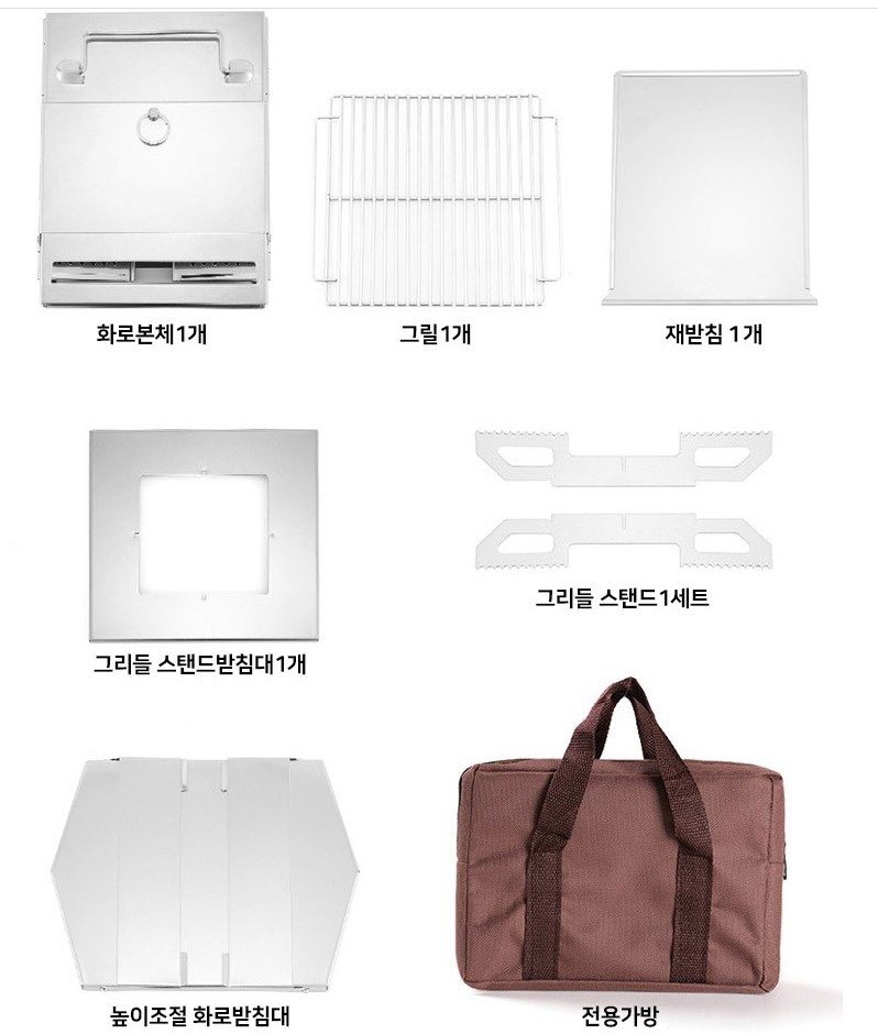 캠핑 백패킹 원터치 폴딩 캠핑화로대 불멍 스테인레스 바베큐그릴 풀세트