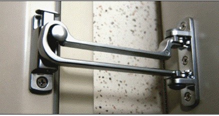 용도: 강력한 잠금 형태로 방범 기능을 강화한 현관문용 안전고리입니다. 특허로 인정받은 L형 걸쇠방식으로, 종래의 안전고리가 잠금 상태에서 문틈이 벌어지는 위험요소를 예방하여 방범성을 높였습니다.