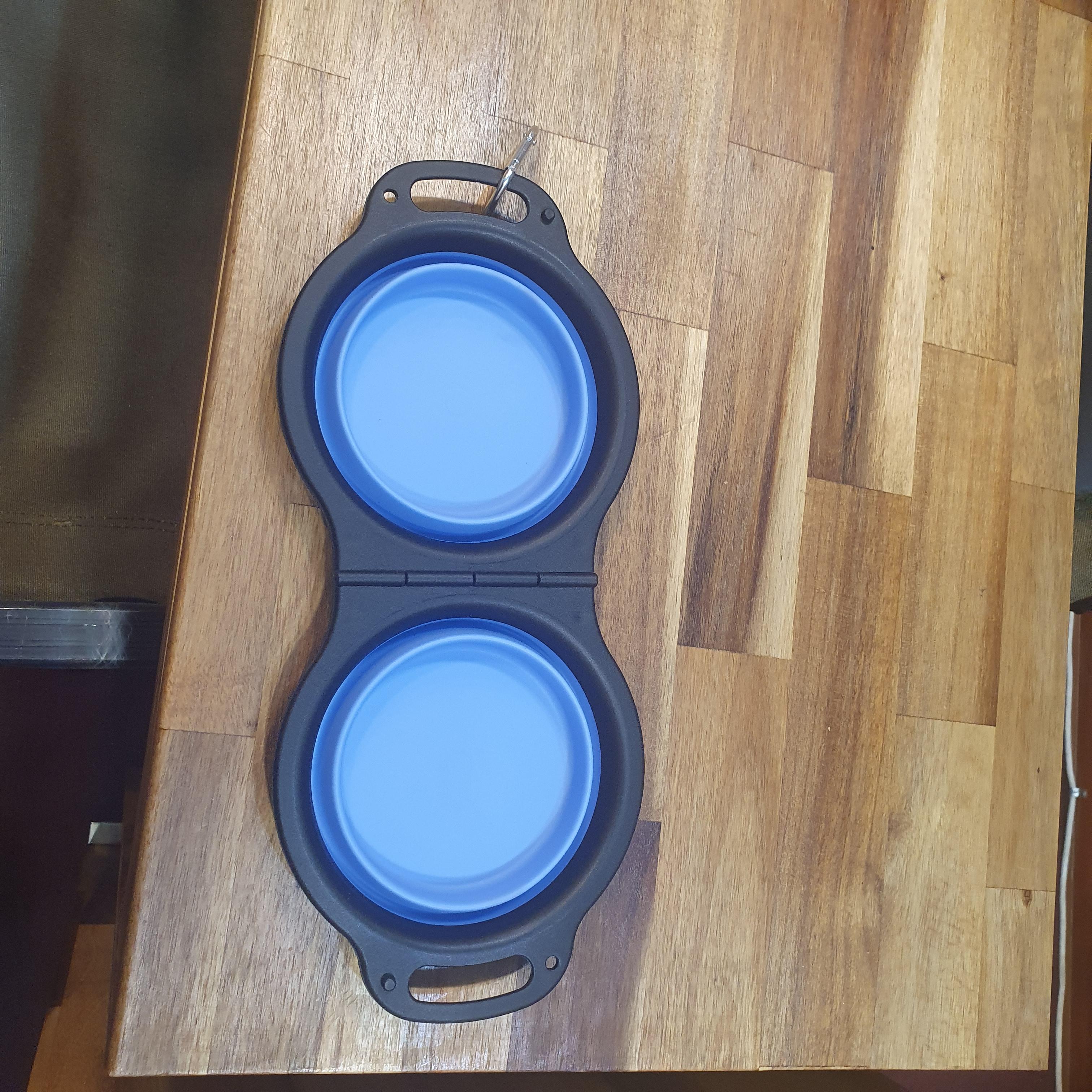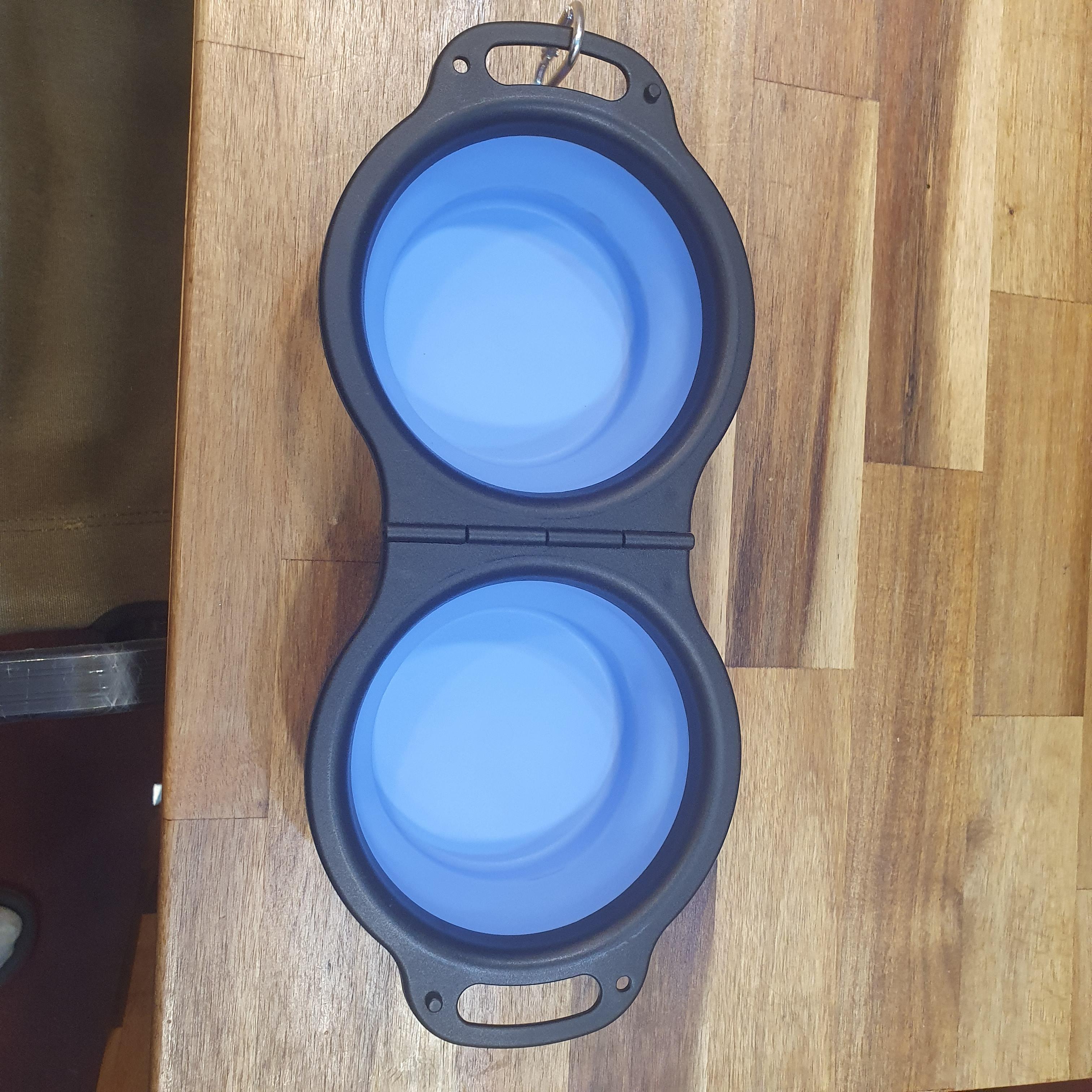 캠핑 애견식기 2구 투톤 휴대용 강아지 밥그릇 여행 산책 물그릇 : 만화의추억스토어
