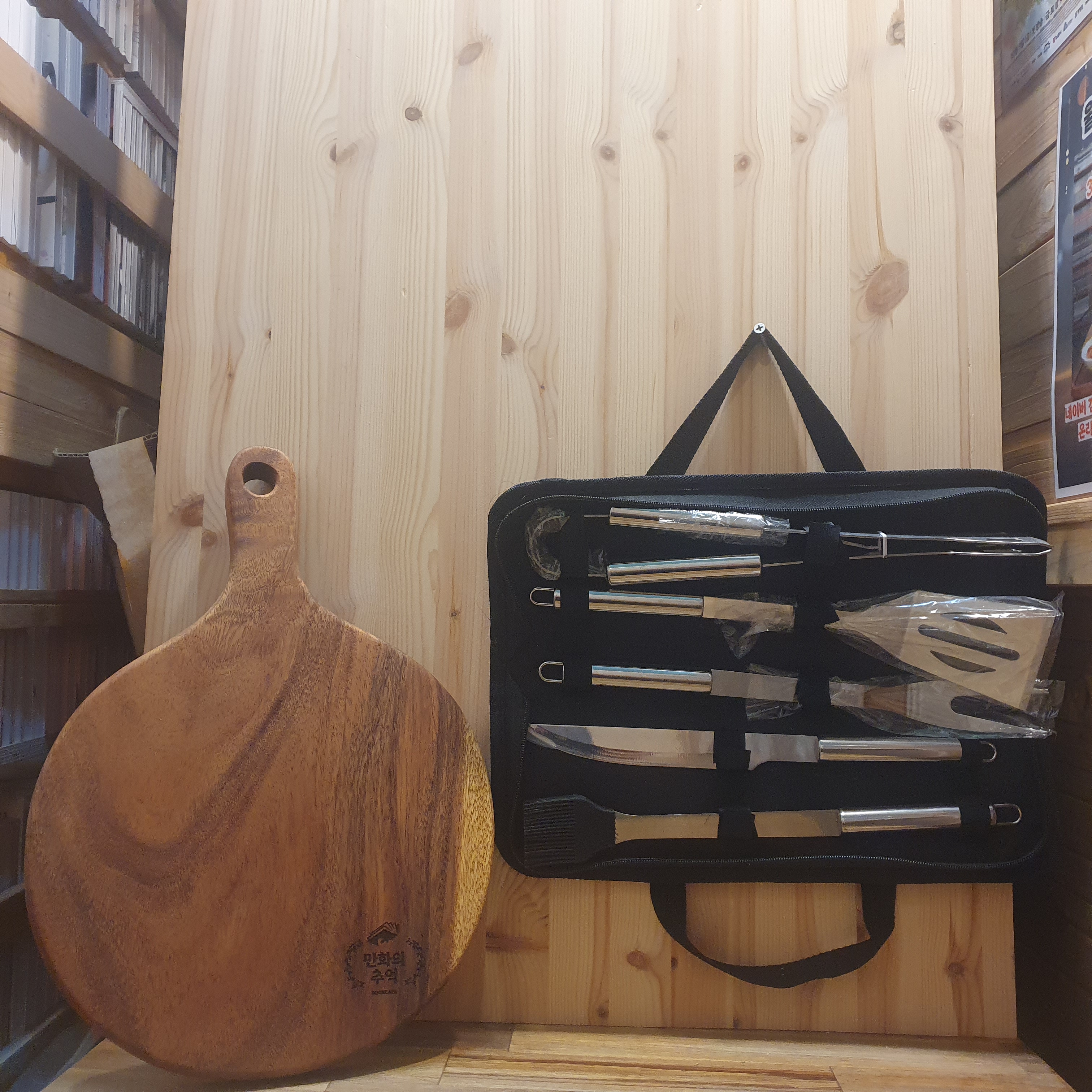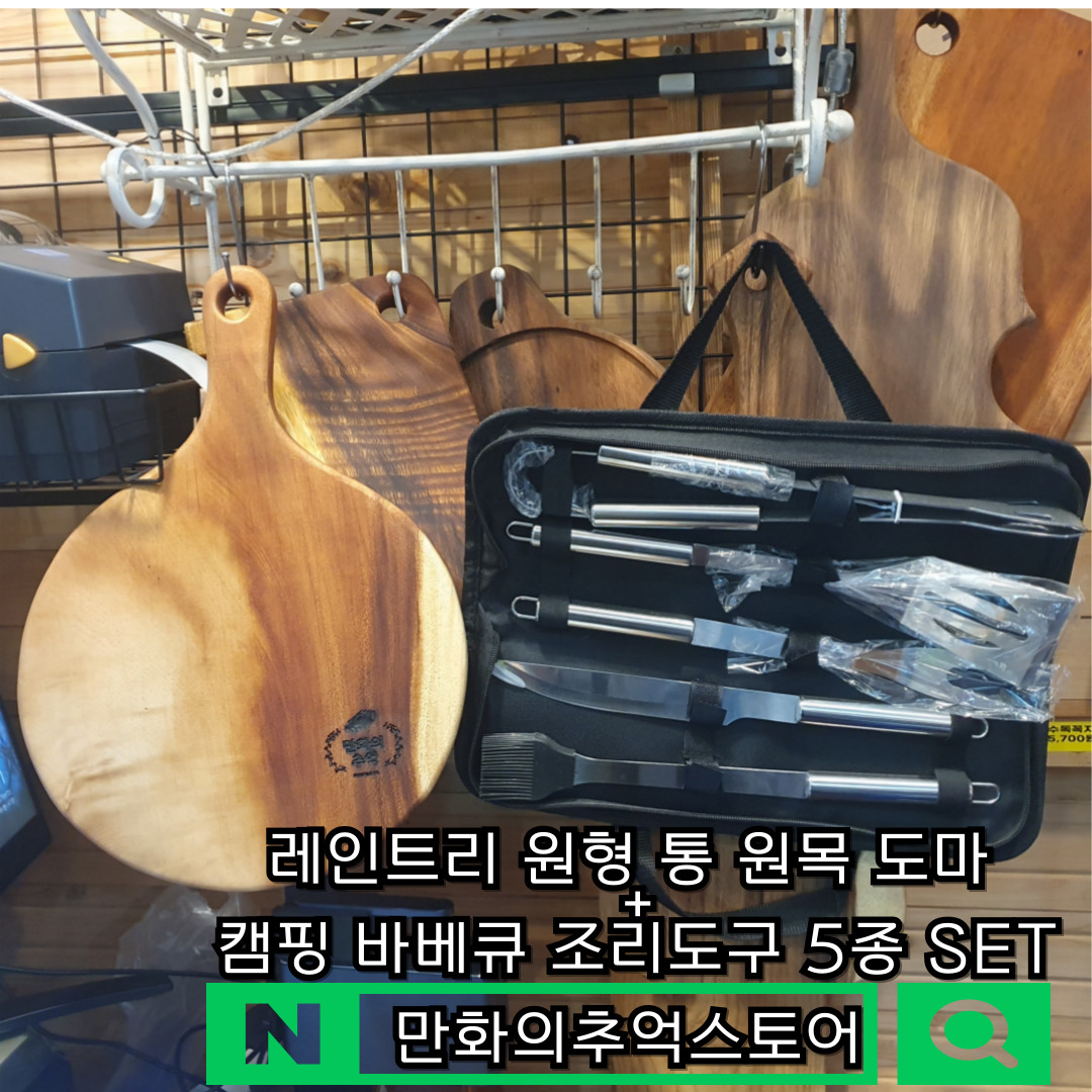 휴대용 스텐 바베큐 캠핑키친툴 원형 레인트리 원목 캠핑도마 세트 : 만화의추억스토어