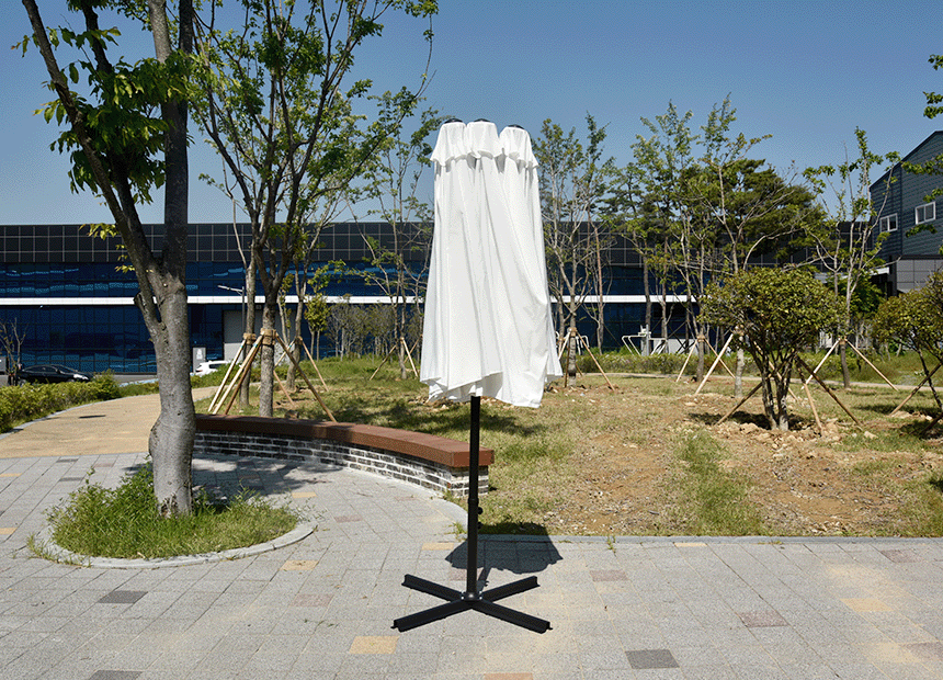 카페 편의점 그늘막 천막 베란다 해변이나 야외 활동 장소에서 쉽게 설치하고 사용할 수 있도록 우산 처럼 설계되어 있습니다