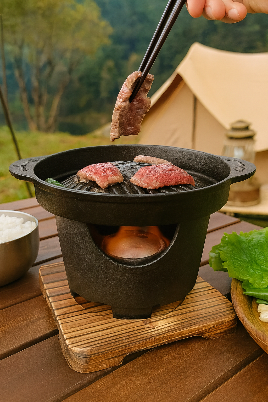 🥩 무쇠 주물 그릴팬 & 미니 화로 세트 | 삼겹살·소고기 맛있게 구워먹는 캠핑 불판