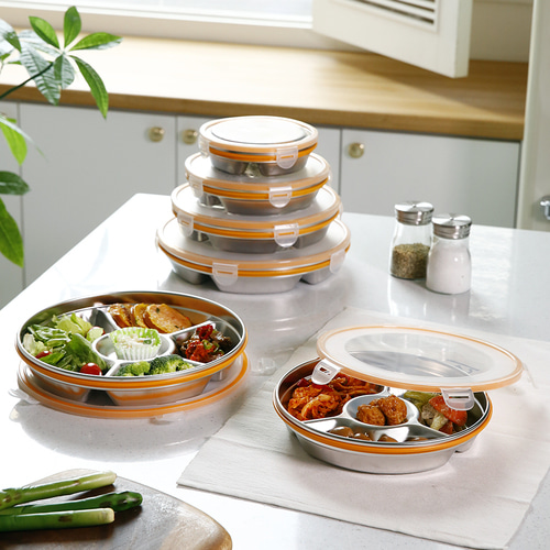 스텐 원형 반찬통 밀폐용기 찬합