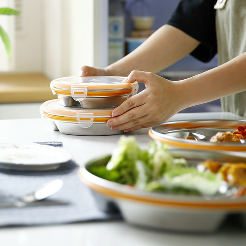 플라라 스텐 나눔 원형 밀폐 3칸 반찬통 중 : 만화의추억스토어
