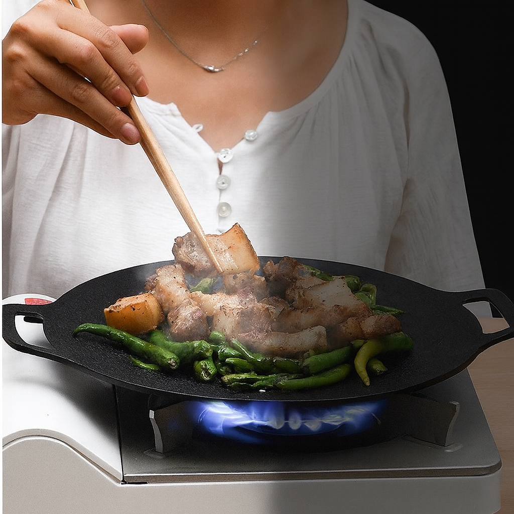 [캠핑 불판 추천] 46cm 대형 알루미늄 코팅 그리들, 감성+실용성 모두 잡은 캠핑 프라이팬!