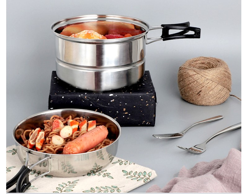 캠핑 차박 피크닉 원형 휴대용 304 스테인레스 찜기 코펠 라면냄비