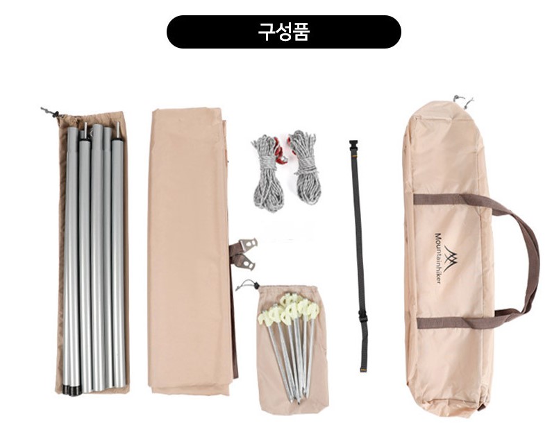 마운틴하이커 그늘막 대형 감성캠핑 150D 베이지 방수 렉타타프 벨텐트 베스티블 폴대포함 : 만화