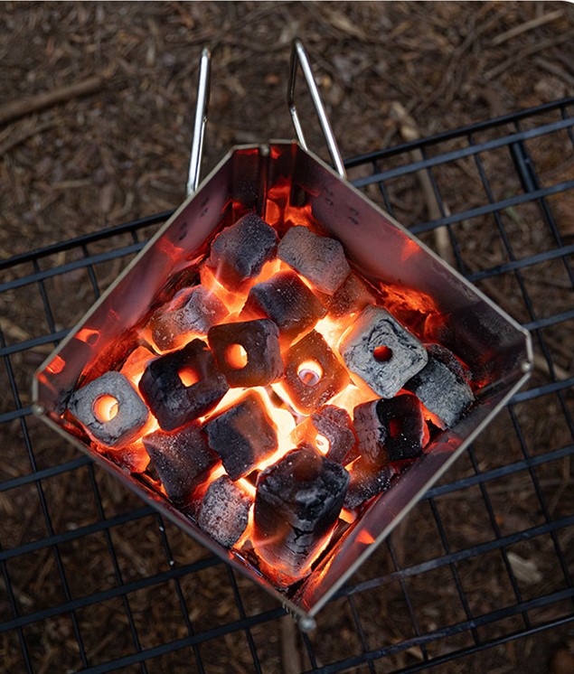스텐레스 소재의 숯받침대가 있어서 안전하고 편리하게 사용가능하며,일체형이라 분실의 위험도 없습니다.