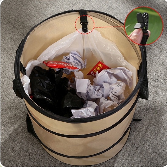 내부에 고정 집게가 있어서 쓰레기봉투 비닐을 집어서 거치할 수 있습니다 간편하게 위생적으로 사용가능합니다