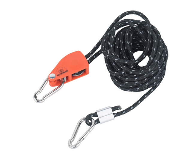 로프 당기기: 손잡이를 이용해 로프를 당겨 텐트나 타프를 팽팽하게 만듭니다.