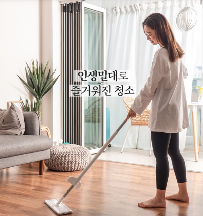 스프레이로 물 분사 노터치 물짜개 거치대가 필요없는 거치대 일체형 자유롭고 유연한 회전 이것이 바로 내 인생 밀대 스프레이로 물 분사, 노 터치 물짜개, 거치대가 필요없는 일체형 밀대 바닥청소 깔끔하게 해보세요!