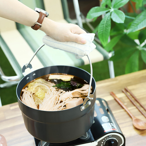 한손으로 들어도 가벼운 무게의 알루미늄 냄비에 열전도율이 좋은 경질 코팅처리로 제작하여 중불로도 빠르게 조리가능합니다.