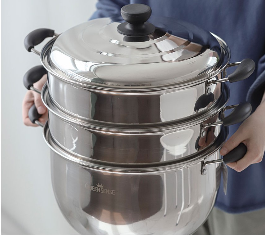 퀸센스 3단 스텐 대형 만두 대용량 킹크랩 대게 랍스터 찜통 찜기 냄비 업소용 32cm : 만화의추억