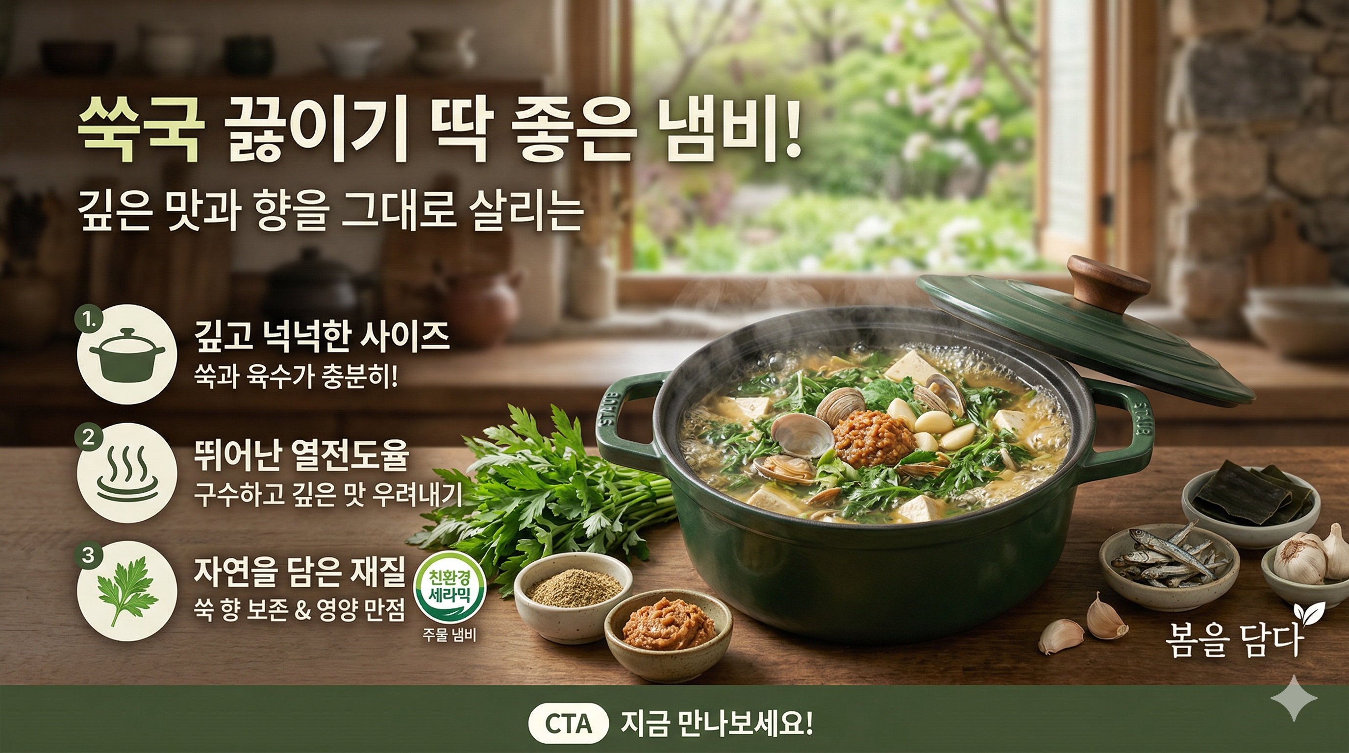 - 쑥의 투입 타이밍: 쑥은 열에 약해 오래 끓이면 질겨지고 향이 날아갑니다. 국물이 완전히 끓을 때 넣어 짧게 조리하세요.