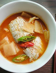 ※ 재료: 갈치2토막, 양파1/2개, 무1/4토막, 홍고추, 풋고추 ※ 양념장: 고추장1작은술, 고춧가루2큰술, 다진마늘, 다진파, 생강가루, 맛술1큰술, 국간장2큰술, 천일염 약간, 다시마육수 3컵 1. 갈치 비늘을 칼등으로 걷어내고 천일염으로 밑간하여 살을 단단하게 해줍니다. 2. 양파, 무, 고추들을 다듬어 준비해 놓습니다. 3. 미리 만들어 놓은 다시마육수에 양념을 살짝 풀어 무를 넣고 팔팔 끓여줍니다. 4. 끓기 시작하면 갈치를 넣어줍니다. 5. 모자란 간은 천일염으로 하고 나머지 야채를 넣고 완성합니다. [출처] 농림수산식품부 블로거 기자단 윤서사랑님(http://blog.naver.com/cucten/150120007304)